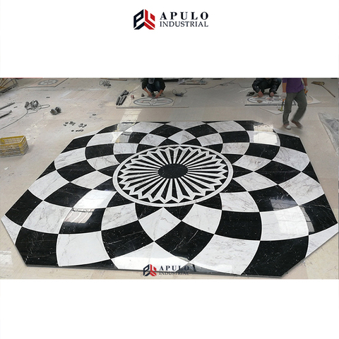Medallón de flores de mármol redondo, diseño de suelo de hotel de lujo de China, piedra negra y blanca, azulejos de chorro de agua, incrustaciones con chorro de agua